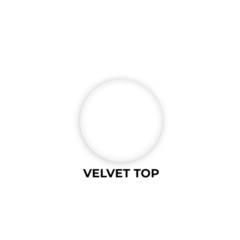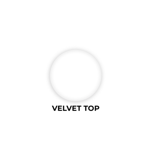 Le top Velvet, mat, a une texture soyeuse, sans couche de dispersion, dédiée à l’application du vernis semi-permanent. Ses qualités le rendent adapté à toutes les techniques de travail : vernis semi-permanent, gel ou polygel. Il a une forte brillance qui ne s’estompe pas avec le temps.